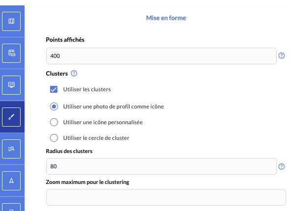 Si vous avez plusieurs points situés dans une même zone mais qu'un seul s'affiche sur votre carte, c'est que l'option "Utiliser les clusters" est surement activée.