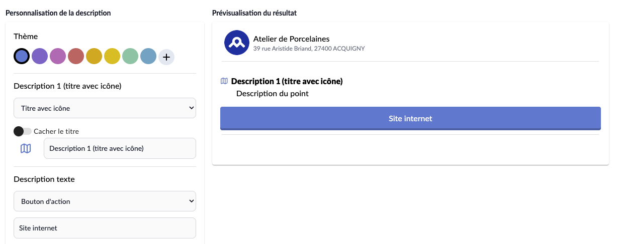 👉 Pour tout savoir concernant le mapping, la stylisation et la configuration de l'affichage des points, consultez notre article Personnaliser le template de mes points à l'aide du mapping (éditer l'attribution des champs)