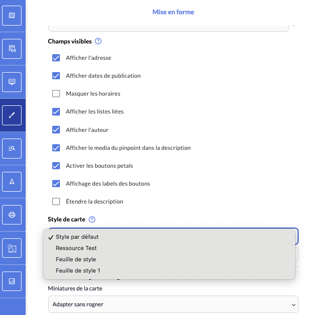 - Rendez-vous dans le menu "Mise en forme", puis dans la rubrique "Style de carte"