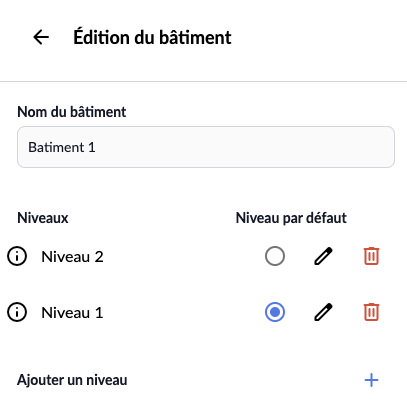 Ajout d'une propriété "Niveau par défaut" pour permettre de configurer la position initiale du bouton switcher de niveaux dans un bâtiment (Créer > Venue > Bâtiments > Niveaux).