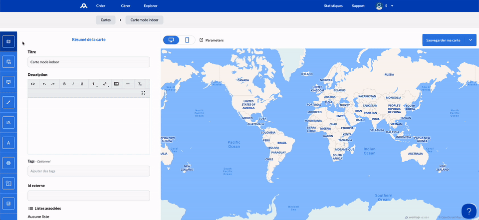 Si vous bénéficiez de la fonctionnalité indoor et que votre carte contient des plans de bâtiments / niveaux / stands... , vous devez activer le mode indoor pour pouvoir le configurer depuis Wemap Pro.