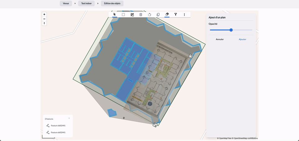 Après avoir dessiné des bâtiments et ajouté des niveaux, vous avez la possibilité de dessiner / ajouter des objets à votre venue.