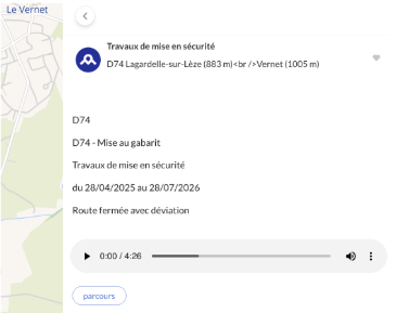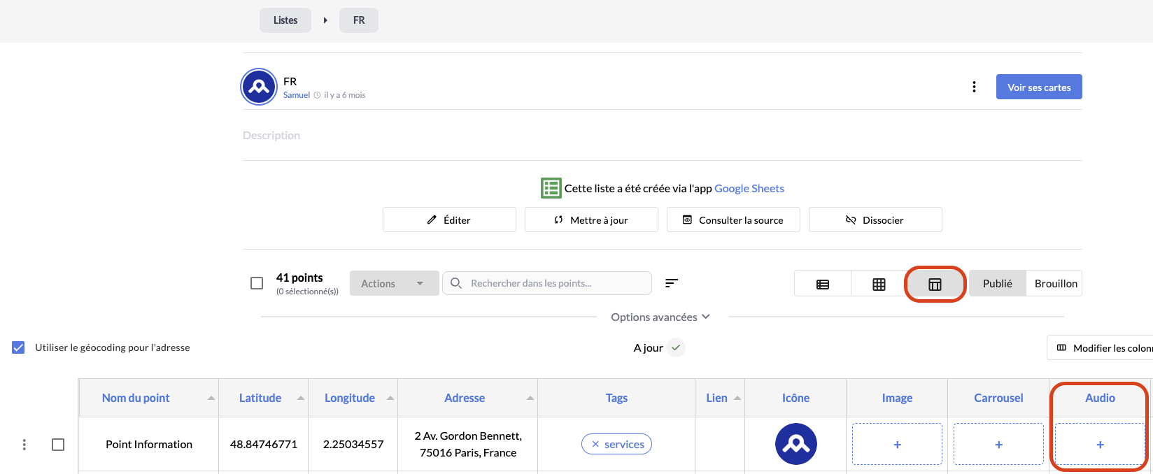 Il est possible d'ajouter un contenu audio à la description de vos points afin de proposer une expérience plus immersive à vos utilisateurs.